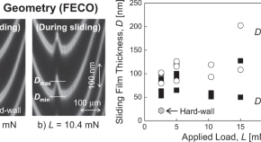 The friction properties of a dilute solution of block copolymer additives in a base lubricant oil confined between mica surfaces were investigated using the surface forces apparatus. Friction force, sliding film thickness, and contact geometry were evaluated in detail, and the results were compared to those of the solutions of a different block copolymer additive having similar molecular structure. The relationship between the chemical structure of additives, confined structures between surfaces, and friction mechanisms were discussed, which shed new light of the design of low-friction surfaces in oil-based lubrication.