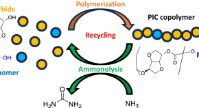 • To functionalize a poly(isosorbide carbonate) (PIC)-based polymer and evaluate its recyclability, several types of diol comonomers were copolymerized with isosorbide. The thermal and mechanical properties and decomposition behavior of the PIC copolymers were investigated. The thermal stability of PIC was retained, and its glass transition temperature was systematically controlled by copolymerization. The decomposition of the PIC copolymers upon treatment with aqueous ammonia yielded monomers and urea, and the decomposition rate was governed by the structure of the comonomer.
