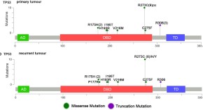 Most of the cancer-associated genes mutated only in high-grade gastrointestinal stromal tumors (GISTs) are mainly involved in cell cycle control. High-grade GISTs had more MYC copy number gains than matched low-grade tumors. The authors show that alterations in cell cycle regulation-associated genes, may promote primary progression from low-grade GISTs to high-grade tumors by regulating tumor cell proliferation.