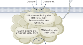 Ferroptosis suppressor protein 1 (FSP1, or AIFM2), an NADPH quinone reductase noted to protect cancer cells from ferroptosis, acts in FAD/NADPH binding and proton transfer. Recent papers assess its evolutionarily conserved sites via mutagenesis and define its inhibition as an off-target mediator of brequinar-mediated ferroptosis sensitization.