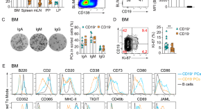• Plasma cells (PC) contribute to the pathogenesis of autoimmune diseases by secreting autoantibodies. Strategies to target pathogenic PCs are thus required. Here, the authors profile different PC subsets in naïve and lupus-prone mice and report the emergence and expansion of a CD19 PC subset in diseased mice that could compromise the effectiveness of CD19-targeting therapies.