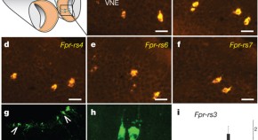 Two different G-protein-coupled receptor families are known to mediate pheromonal cues in the mammalian vomeronasal organ. Here, members of a third family of receptors, the formyl peptide receptor-related gene family (FPRs), are shown to be expressed in the vomeronasal epithelium, with those cells expressing FPRs responding to ligands associated with disease and inflammation. This raises the possibility that FPRs detect the health status of individuals.