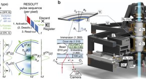 The ability to discriminate objects along the optic axis is a benchmark for three-dimensional imaging techniques. Here, the authors combine metastable-state switching and opposing objective lenses to suppress out-of-focus background and record three-dimensional nanoscale images of living cells.
