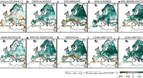 Climate change will have a significant impact on the hydrologic cycle, creating changes in freshwater resources, land cover and land–atmosphere feedbacks. Simulations using a groundwater flow model with integrated overland flow and land-surface model processes show that groundwater depth, which results from lateral water flow at the surface and subsurface, determines the relative susceptibility of regions to changes in temperature and precipitation.