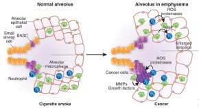 Smoke is a solid. Whether from cigarettes, cooking fires or other sources, it is comprised of tiny particles that injure the lung and can lead to lung cancer and chronic obstructive pulmonary disorder, characterized by laborious breathing. Steven D. Shapiro and his colleagues take a look at imaging data in people suggesting that these two conditions have more in common mechanistically than was previously thought. Both diseases seem to stem in part from the ability of inhaled particles to trigger inflammation, a process examined by Robert M. Senior and his colleagues.
