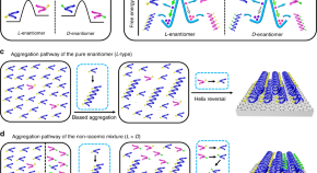 • The formation of homochiral supramolecular networks at solution–solid interfaces typically relies on the soldier-and-sergeant approach, in which a small amount of chiral modifier defines the handedness of the network. Now, judicious choice of the sergeant, solvent, temperature and concentration has enabled chiral induction pathways to be controlled so that a homochiral surface of either handedness can be assembled from the same system.