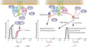 A highly selective JAK3 inhibitor with subnanomolar potency has been used to identify two waves of STAT5 phosphorylation in response to IL-2. This reveals a biphasic role for JAK3 catalytic activity in IL-2-mediated signaling that has therapeutic implications.