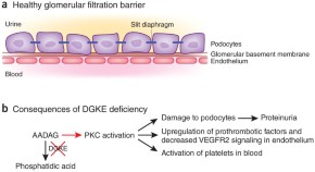 • A new study reports that recessive loss-of-function mutations in the gene encoding diacylglycerol kinase ε result in atypical hemolytic-uremic syndrome. Notably, mutations in DGKE are not associated with activation of the complement pathway, the only other identified cause of this disorder so far, and have important implications for patient management.