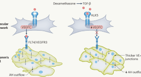 • Primary congenital glaucoma (PCG) is characterised by increased intraocular pressure, and variants in ANGPT1, or SVEP1 have been identified as risk alleles. Here, the authors show that deletion of these genes induces glaucoma in mice, and that activation of ANGPT1-TEK signaling ameliorates disease progression in mouse models.