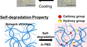 Thermoresponsive degradable copolymers and hydrogels were synthesized by radical copolymerization of 2-methylene-1,3-dioxepane (MDO) and N,N-dimethylacrylamide (DMAAm). These prepared materials showed thermoresponsive property through the balance of hydrophobic MDO and hydrophilic DMAAm in the polymer chain. Under alkaline conditions (pH 11.3), these materials degraded and turned into water-soluble oligomers. In addition, the hydrogels self-degraded in PBS due to the decreased pH of the inner hydrogel. The prepared thermoresponsive degradable hydrogels are expected as stimuli-responsive drug delivery carriers and cell culture scaffolds.