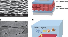 Biomineralization, the process by which organisms create a variety of sophisticated composites such as bone and shell, is an ideal model toward materials fabrication in an environmentally friendly way. This article reviews recent progress in the biomineralization-inspired synthesis of polymer–inorganic composites including (1) polymer–calcium carbonate thin films synthesized by interaction among insoluble polymer, soluble acidic polymer, and inorganic ions; (2) polymer nanogel–calcium phosphate nanoparticles synthesized on scaffolds of hydrogel nanoparticles; and (3) colloidal silica nanoparticles made to self-assemble into anisotropic structures by interaction with block copolymers.