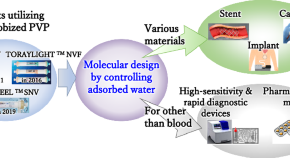 In this review, we proposed a unique concept in which if the mobility of the adsorbed water around the proteins and the polymer is the same, protein adhesion will not occur, improving antithrombogenic properties. On the basis of the above concept, we have established the foundational technique for developing antithrombogenic materials and successfully achieved the world's first practical application of antithrombogenic PSf membrane artificial kidneys. The technique that enables polymer design led by computational science is applicable to various medical and diagnostic devices.