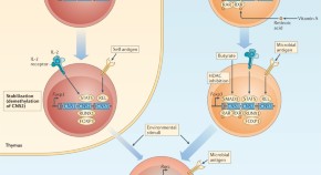 Intestinal regulatory T cells (Tregcells) are distinct from those in other organs and function to maintain tolerance to harmless dietary antigens and commensal microorganisms. The unique features of these cells, as well as the signals involved in their development and maintenance, are discussed in this Review.