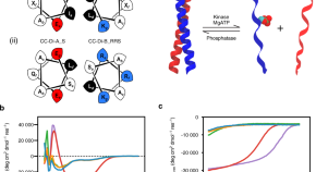 The ability to dynamically control protein-protein interactions and localization of proteins is critical in synthetic biological systems. Here the authors develop a peptide-based molecular switch that regulates dimer formation and lipid membrane targeting via reversible phosphorylation.