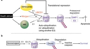 Inhibitor of apoptosis proteins (IAPs) are critical regulators of apoptosis. Recent evidence suggests that in some situations, induction of apoptosis initiates general repression of translation, as well as the targeted ubiquitination and degradation of IAPs.