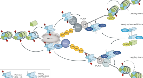 Maintenance of cell-type identity requires the faithful inheritance of chromatin states through cell division, despite the challenges posed by the disruptive passage of the DNA replication fork and the dilution of nucleosome components in complex with the daughter DNA strands. In this Review, Escobar, Loyola and Reinberg discuss how methodological advances are providing unprecedented mechanistic insights into the segregation of parental nucleosomes, how these mechanisms maintain gene expression programmes and how non-faithful nucleosome segregation is linked to differentiation and disease.