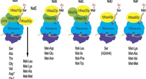 N-terminal acetylases catalyze the cotranslational modification of myriad proteins. Structural and mutational analyses of the NatA complex, comprising a catalytic and auxiliary subunit, and of the catalytic subunit alone reveal the molecular basis for substrate binding, specificity and mode of catalysis, and the role of the auxiliary subunit in these activities.