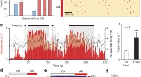 Single-unit recordings and optogenetic manipulations in mice undergoing auditory fear conditioning show that fear expression is related to the phasic inhibition of prefrontal cortex (PFC) parvalbumin interneurons; inhibition disinhibits PFC projection neurons and synchronizes their firing, leading to fear expression.