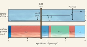 It has been suggested that the Cambrian ocean was oxygen deficient, but physical evidence for widespread anoxia has been lacking. Now, sulphur isotope data from Cambrian rocks at six different locations around the world is presented, with the finding of a positive sulphur isotope excursion in phase with a large excursion in the marine carbon isotope record, which is thought to be indicative of a global carbon cycle perturbation at the time. With the help of a box model, these isotope shifts support the idea of large-scale anoxic and sulphidic conditions in the later Cambrian ocean.