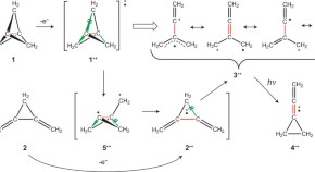One-electron oxidation is generally expected to weaken a bond in a molecule or, on rare occasions, break it. Removing one electron from a small propellane cage has now been shown to break three lateral bonds, opening it up into an acyclic cation after a cascade of rearrangements, initiated by vibronic coupling.