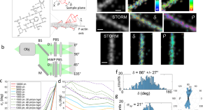 Single-molecule localisation microscopy does not give orientation information. Here the authors combine Stochastic Optical Reconstruction Microscopy (STORM) with single molecule orientation and wobbling measurements using four-polarisation image splitting, 4polar-STORM.