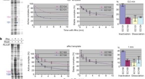 • Here, using cryo-EM and biochemical methods, the authors demonstrate that second messenger (p)ppGpp regulates the bacterial RNA polymerase by binding to a site that is functionally relevant during transcriptional elongation but not initiation. Moreover, they demonstrate that binding to that site bears functional implications for nucleotide excision DNA repair and genome stability.