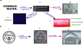 Thermal cloak metamaterials are important in heat camouflage and protection of electronic devices, but are often purely metallic and limited in flexibility. Here, a durable, non-cracking, and anti-corrosive thermal metasurface is fabricated by laser engraving a graphene coating onto a copper substrate.