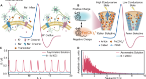 Nanofluidic hold promise for mimicking neural systems, yet replicating their complex spiking dynamics remains challenging. Here, authors developed a nanofluidic oscillating neuron (FON) that emulates spiking behaviors and encoding mechanisms of neurons, demonstrating programmable control over spiking patterns in response to both electrical and chemical stimuli.