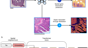 • Spatial transcriptomics technologies are still too restrictive for widespread clinical use, and methods that have been designed to bridge them with histopathology carry important limitations. Here, the authors develop MISO, a deep learning framework that allows inferring tissue spatial organisation and gene expression with near single-cell resolution from histopathology images.
