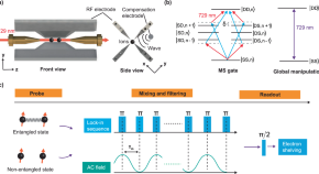 • Quantum lock-in detection (QLID) is crucial for extracting oscillating signals from noise, while quantum entanglement is vital to surpass the standard of quantum limit in precision measurement. Here, the authors experimentally realise entanglement-enhanced QLID using two trapped ions, achieving frequency measurement precision at the Heisenberg limit and demonstrating an improved inverse-quadratic temporal scaling.