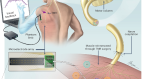 • Following amputation, the neural signals embedded in electromyography recordings from a high-density microelectrode array inserted in a reinnervated muscle can be functionally separated via a mathematical approach without surgically partitioning the distinct neural sources.