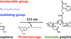 The polythiophene nanoparticles exhibit multichromic responses to solvent, temperature and acid/base, which can be detected by the naked eye in tetrahydrofuran/water mixtures. As the concentration of water increases, the nanoparticles turn from yellow to violet by solvatochromism. The nanoparticles display a reversible thermochromic response between 20 and 90 °C, which originates from the morphological changes between an amorphous solid and isotropic liquid. Halochromic behavior of the nanoparticles is achieved by adding hydrobromic acid and bubbling with ammonia gas owing to p-doping and dedoping of the polythiophene nanoparticles, respectively.