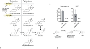 • Biosynthesis of all androgens from cholesterol first requires cytochrome P450 (CYP) 11A1 for generation of pregnanes and then CYP17A1 for biosynthesis of androgens, but CYP17A1 inhibition cannot completely inhibit androgen biosynthesis in prostate cancer. Here, the authors identify a role for CYP51A1 in the biosynthesis of androgens that completely bypasses the requirement for CYP17A1 and demonstrate that CYP51A1 is essential for the biosynthesis of 13C-testosterone from 13C-cholesterol in prostate cancer cells.