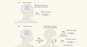 A brain–computer interface device synthesizes speech using the neural signals that control lip, tongue, larynx and jaw movements, and could be a stepping stone to restoring speech function in individuals unable to speak.
