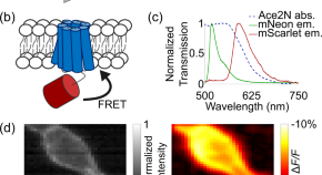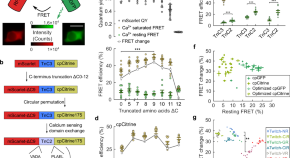 Zhang, Redington & Gong develop FRET-based ratiometric calcium sensors with pairs of green and red fluorescent proteins. Their best performers, Twitch-GR and Twitch-NR inherit the superior photophysical properties of their constituent fluorescent proteins, enabling them to outperform existing ratiometric calcium sensors in brightness, photobleaching, and signal fidelity metrics.