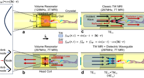 Achieving uniform spin excitation, crucial for MRI, is challenging in the electrically large human body at UHF. Here, authors introduce an innovative dielectric waveguide specifically designed for traveling-wave MRI, which enhances homogeneity and efficiency through effective wave manipulation.