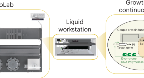 This study reports on an industrial-grade, large-scale, all-in-one integrated and automated laboratory (iAutoEvoLab), combined with a genetic circuit-controlled, growth-coupled continuous evolution system based on OrthoRep, which can evolve proteins with diverse and complex functionalities. These include protein–protein interactions, protein–DNA interactions, proteins requiring both protein–DNA and protein–ligand interactions, and fusion proteins with low to near-zero activities.