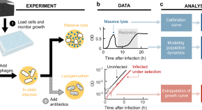 Traditional assays for counting bacteriophages and their lysogens are labor-intensive and perturbative to the host cells. Here, the authors present a high-throughput method that can be used to estimate the number of phages in a sample, by measuring growth dynamics of the infected culture in a microplate reader.