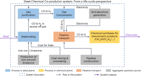 Achieving a net-zero future requires that hard-to-abate sectors be addressed. Co-production offers an opportunity to mitigate chemical and steel sector emissions by extracting H2 and CO from steelmaking off-gas and using them for chemical syntheses. The authors examine carbon mitigation and costs of co-producing chemicals and steel in China.