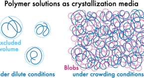 Dissolved polymers directed molecular crystallization behavior under dilute and crowding conditions. Larger poly(ethylene glycol)s (PEGs) accelerated caffeine crystal formation in the dilute regime of PEG solutions, which was attributed to the depletion attraction that promoted caffeine cluster aggregation into crystal nuclei. In the semidilute regime, the crystal formation rate was insensitive to the molecular weight of PEGs. This observation was consistent with polymer blob properties, which govern depletion attraction and maintain a constant size at a given polymer concentration, irrespective of molecular weight in the semidilute regime.