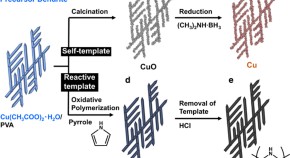Dendritic morphologies of a metal oxide, metal and conductive polymer were obtained by using the dendrites of a transition metal salt as a template. Dendrites of the transition metal salt, copper acetate monohydrate (Cu(CH3COO)2·H2O), were prepared under diffusion-controlled conditions in a polymer matrix, such as poly(vinyl alcohol). The resultant dendritic morphologies of Cu(CH3COO)2·H2O were replicated to copper oxide (CuO), metallic copper (Cu) and polypyrrole without morphological changes. These methods can be applied to other metal oxides, metals and polymers.