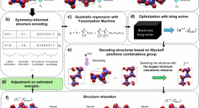 Predicting stable structures of large crystals, unit cells containing tens or even hundreds of atoms, has been a long-standing challenge. In this article, the authors present a combinatorial optimization-based algorithm that leverages the inherent symmetry of crystals, making it potentially achievable, especially with future implementation on quantum hardware.