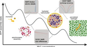 Studying the phase separation of small molecule systems provides a simplified framework for elucidating assembly pathways that may be obscured in macromolecular systems, but most studies focus on protein- or RNA-based condensates. Here, using nuclear magnetic resonance, the authors reveal that ATP, in the presence of Mg²⁺, undergoes phase separation coupled to percolation (PSCP), where the formation of 1:2 Mg²⁺–ATP nanoclusters precedes system-spanning networks and macroscopic condensation.