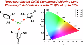 Luminescent lanthanide materials are of value for a range of applications, but most rely on intrashell f–f transitions, limiting their tunability. Here, the authors explore f–d transitions in three-coordinated cerium(III) complexes, achieving orange d–f emissions with photoluminescence quantum yields of up to 62%.