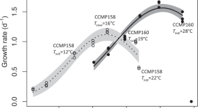 A model describing phytoplankton photosynthesis as a function of irradiance effectively captures photosynthetic rate above limiting and at photo-inhibiting irradiances, according to mathematical modelling of phytoplankton photosynthesis-irradiance curves.