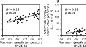 Using Bayesian inversion on microbial growth curves, the difference between activation energies of molecular destructive and constructive processes is identified as the main driver of variations in the maximum growth temperature of archaeal cells.