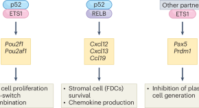 A complex of the NF-κB family member p52 and the transcription factor ETS1 is required for B cell germinal center responses to T cell-dependent immunization and for IgE-dependent allergic responses.