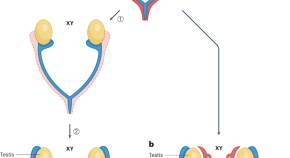 Persistent Müllerian duct syndrome (PMDS) is a rare difference in sex development, characterized by the presence of Müllerian duct derivatives in 46,XY individuals with male-typical development. Untreated PMDS is associated with risks of infertility and malignancy. In this Review, the authors provide an comprehensive primer on the epidemiology, pathophysiology and management of the condition, considering the need for a high index of clinical suspicion and timely intervention, raised awareness of PMDS among clinicians and multidisciplinary care to optimize outcomes for patients.